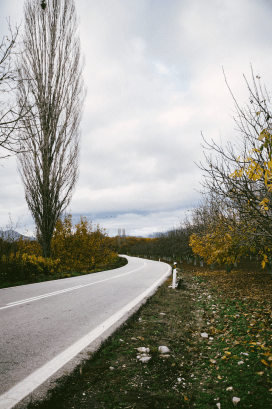 «…ο δρόμος μέχρι τη Λάρισα μου είναι οικείος. Πρώτη στάση στη Στυλίδα να ξεπιαστώ. Μπαίνω στο αμάξι και κατευθύνομαι προς το κέντρο της Λάρισας. Δεν συναντώ δυσκολίες παρά μόνο κάποια έργα στην έξοδο. Ανεβαίνω σιγά σιγά την οροσειρά, αφήνω τον Τύρναβο, την Ελασσόνα, το τοπίο αλλάζει, η θερμοκρασία πέφτει κάτω από το μηδέν, συνθέσεις φθινοπωρινών χρωμάτων και ομίχλη με κάνουν να χαμηλώσω ταχύτητα. Το οδόστρωμα αξιόλογο, σταματώ να φωτογραφίσω τους μπλε κορμούς που συναντώ μπροστά μου. Ο Βελβεντός δεν απέχει πολύ πλέον. Λίγο πριν τη γέφυρα της λίμνης Πολυφύτου, στρίβω δεξιά. Απομένουν 5 με 10 χιλιόμετρα. Είναι γύρω στις 15.30, σταματώ σ’ ένα ψιλικατζίδικο να πάρω τις τελευταίες οδηγίες προς τον ξενώνα «9 μούσες». Παρκάρω δίπλα, η πόρτα ανοικτή, αλλά κανείς μέσα. Καλώ στο τηλέφωνο, καμιά απάντηση. Περιμένω. Περνάει ένα μισάωρο και εν τέλει συνεννοούμαι- μετά από λίγη ώρα καταφθάνει η υπεύθυνη. Το δωμάτιο δεν είναι έτοιμο και κάπως έτσι αποφασίζω να τριγυρίσω στο χωριό. Αργότερα το απόγευμα οδηγούμαι προς την ταβέρνα «Εν βελβεντώ». Πιάνω μια μικρή συζήτηση, περί ‘Καποδίστρια’, μιας και έχω συναντήσει διάφορα πανό στα γύρω σοκάκια. Υποστηρίζουν πως ο νέος δήμος μεριμνεί πλέον για άλλα χωριά, όχι για το δικό τους. Το φαγητό νόστιμο και οικονομικό, αφήνω 8 ευρώ και κατευθύνομαι προς το δωμάτιο…»