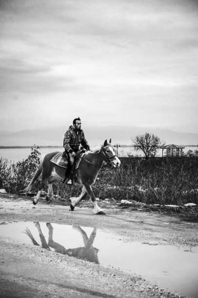 Στην πορεία έχουμε και μια μοναδική συνάντηση με τα άλογα της λίμνης. Ένα από αυτά ίσως αισθάνεται την αδυναμία μου προς εκείνα και έχοντας γυρισμένη την πλάτη μου, περνάει το λαιμό του από το μπράτσο μου σαν να με αγκαλιάζει. Του προσφέρω όποια φρέσκα χόρτα βρίσκω εκεί κοντά και επιστρέφουμε στον ξενώνα για το πολλά υποσχόμενο πρωινό. Οι προσδοκίες μας δεν πηγαίνουν χαμένες. Καταλήγουμε στο τζάκι και πάλι, όπου πιάνουμε κουβέντα μ’έναν δάσκαλο του χωριού, δεινό μηχανόβιο και άνθρωπο που σίγουρα θα ήθελα να μοιραστώ περισσότερες ιστορίες μαζί του, για τον τρόπο ζωής και τα ταξίδια του.