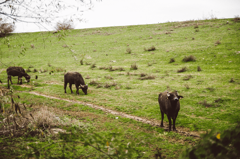 Βγαίνουμε από το καΐκι και κατευθυνόμαστε προς το αυτοκίνητο. Κάπου εκεί κάνω νόημα στα παιδιά- από κάτω βοσκά ένα κοπάδι νεροβούβαλων..»