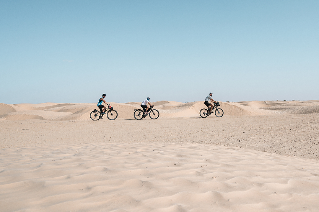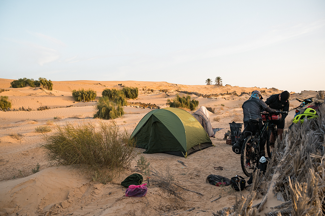 Το πρωί μας βρίσκει κουκουλιασμένους από το κρύο, διστακτικούς ως προς την ανάγκη πακεταρίσματος και αποχώρησης. Έχουμε κλείσει δώδεκα ώρες μέσα στις σκηνές. Τα κουνούπια ευτυχώς έχουν εξαφανιστεί. Η άμμος δροσερή, δεν κολλάει ούτε κόκκος στα πόδια μας. Μία ώρα μετά ξεκινάμε για το Τοζέρ, χρειαζόμαστε περίπου εβδομήντα χιλιόμετρα μέχρι εκεί.