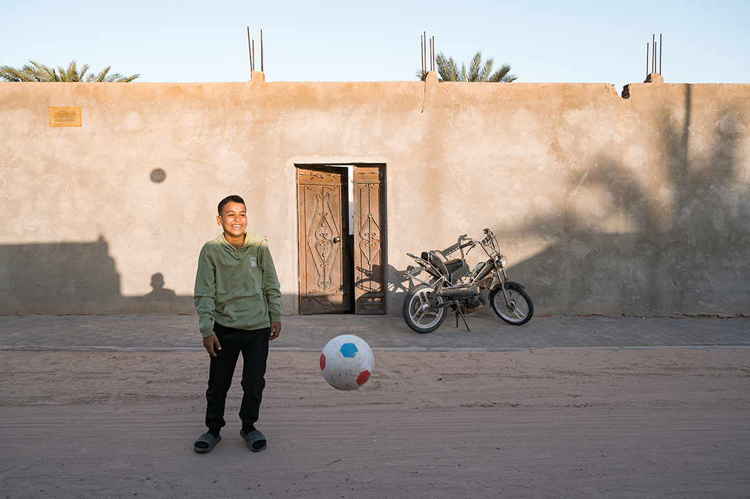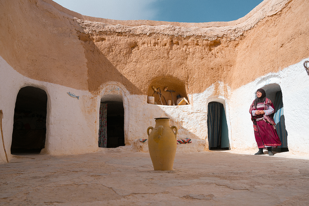Η ξενάγηση και το φυσικό φως φτάνουν στο τέλος τους και καθοδηγούμαστε από τον Μοχάμεντ στο σπίτι του. Στην είσοδο, μάς υποδέχεται όλη του η οικογένεια, από ηλικιωμένους μέχρι μικρά παιδιά. Η μητέρα του κατευθύνεται προς την κουζίνα για να μας μαγειρέψει κουσκούς με μοσχάρι και μπόλικα μπαχαρικά. Εμείς ανεβαίνουμε κάποιες σκάλες και φτάνουμε στο δωμάτιο του Μοχάμεντ. Τρία ντιβάνια στη σειρά, με σούστες σκουριασμένες, παντού αντικείμενα, εργαλεία, ρούχα. Σ’ ένα κάδρο αναρτημένες φωτογραφίες και σημειώματα από προηγούμενους ποδηλάτες που έχουν φιλοξενηθεί και ευχαριστούν τον ίδιο και την οικογένειά του.