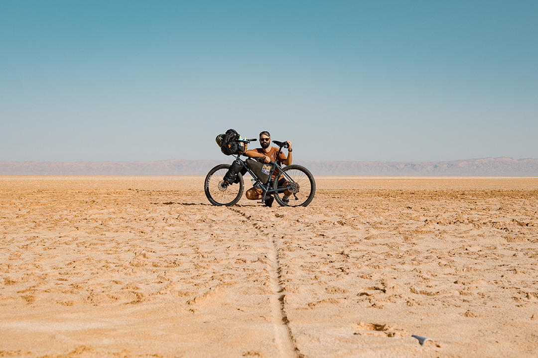 Στα όποια διαλείμματα της κίνησης των αυτοκινήτων και των φορτηγών, των μηχανόβιων που μας χαιρετούν, με διακατέχει μία έντονη επαφή με την απλότητα της φύσης γύρω μου. Αναλογίζομαι τη δυσκολία της απόστασης που κάποτε έπρεπε να διανύσουν οι άνθρωποι πάνω σε καμήλες, άλογα ή πεζή. Στα αυτιά μου, μόνος και έρημος ο αγέρας, συνοδευόμενος από μικρούς, κάπως ενοχλητικούς ήχους της αλυσίδας. Απόντες οι ήχοι δέντρων ή πτηνών. Το απέραντο τίποτα…
