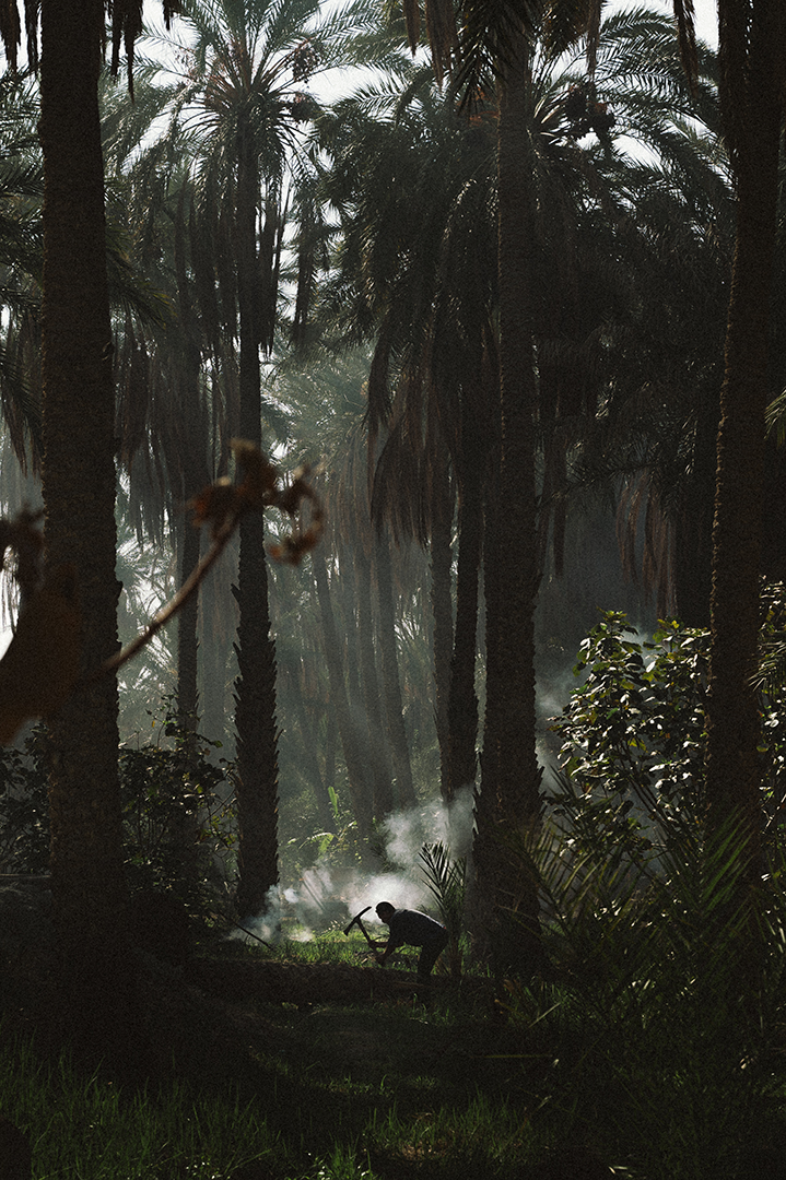 Αφήνουμε το Τοζέρ μετά από μία τελευταία βόλτα γύρω από τη Μεντίνα και το φοινικόδασος που βρίσκεται κατά μήκος του νότιου τμήματος της πόλης. Παρατηρώ από μακριά έναν ξυλοκόπο με το τσεκούρι και την αξίνα να συνθλίβει ορισμένους κορμούς που βρίσκονται διάσπαρτοι στο έδαφος.