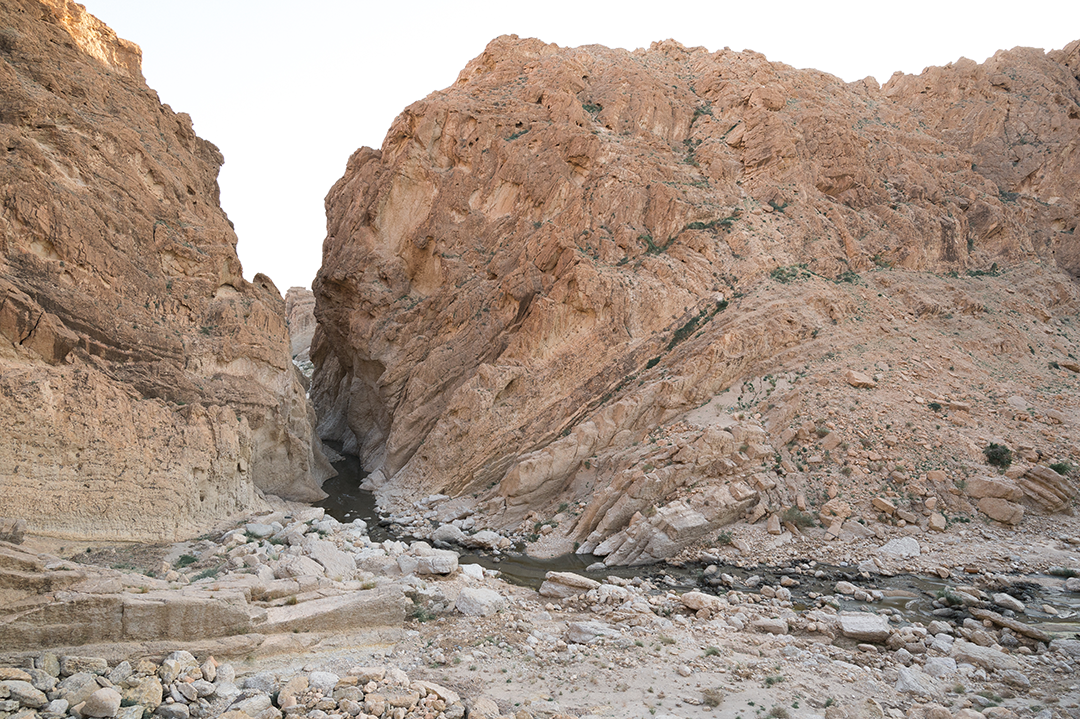 Ύστερα κατευθυνόμαστε για ένα φαράγγι, λίγο έξω από την πόλη. Κοντεύει να δύσει. Μπαίνουμε σε γραμμές τρένου εν λειτουργία. “Αν δείτε το τρένο να έρχεται κρυφτείτε σε αυτές εδώ τις τρύπες”. Νομίζω αρχικά πως αστειεύεται, μα σύντομα συνειδοτοποιώ ότι κυριολεκτεί και ότι οι τρύπες αυτές χωρούν πολύ δύσκολα κι εμάς και τα ποδήλατά μας. Συνεχίζουμε μέσα στα σκοτάδια του τούνελ με γοργούς βηματισμούς, ώσπου στο φως ξεπροβάλλει η κόψη του φαραγγιού. “Η σύσταση του ποταμιού αυτού ήταν κάποτε φυσική. Τώρα το αποκαλούμε το Μαύρο ποτάμι. Είναι λόγω του εργοστασίου φωσφόρου, γαλλικών συμφερόντων.”